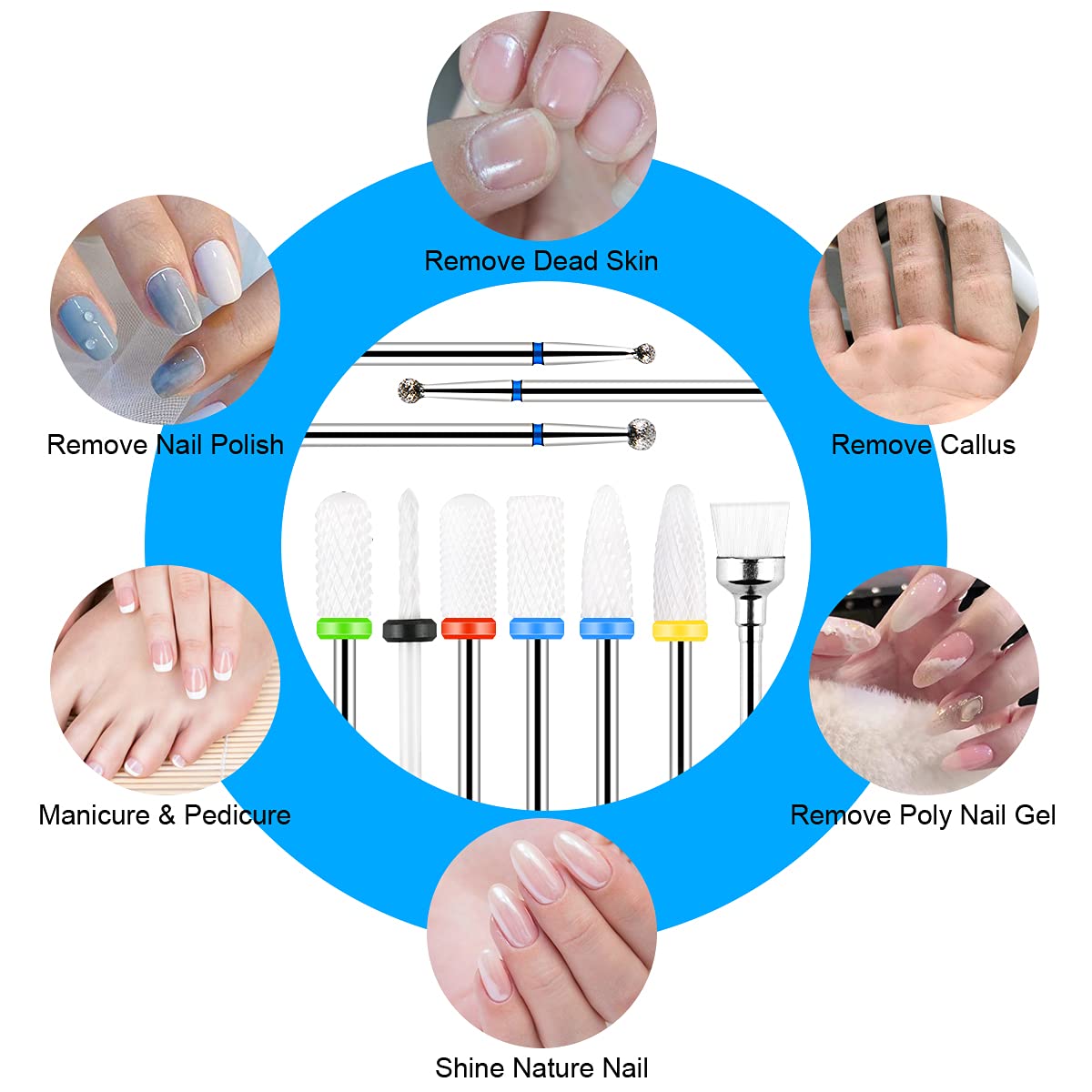 - 【Compatible with most electric nail art machines】Universal 3/32 "(2.35mm) Ceramic Nail Drill Set is perfect for the market most the electric nail machines. With it, you do not have to go to the nail shop can have perfect nails, more importantly, you can always DIY nail art Art. It's like taking home a nail salon.