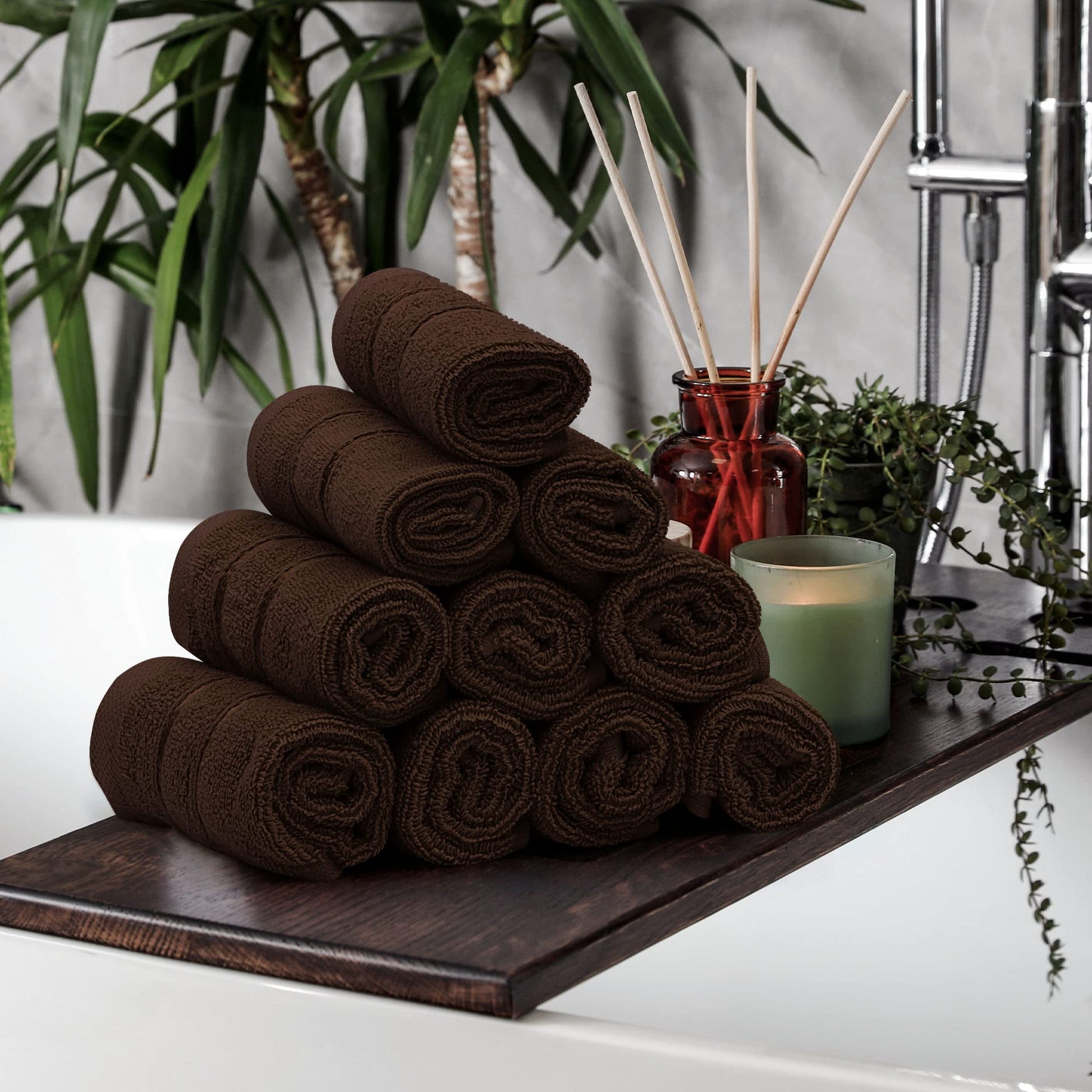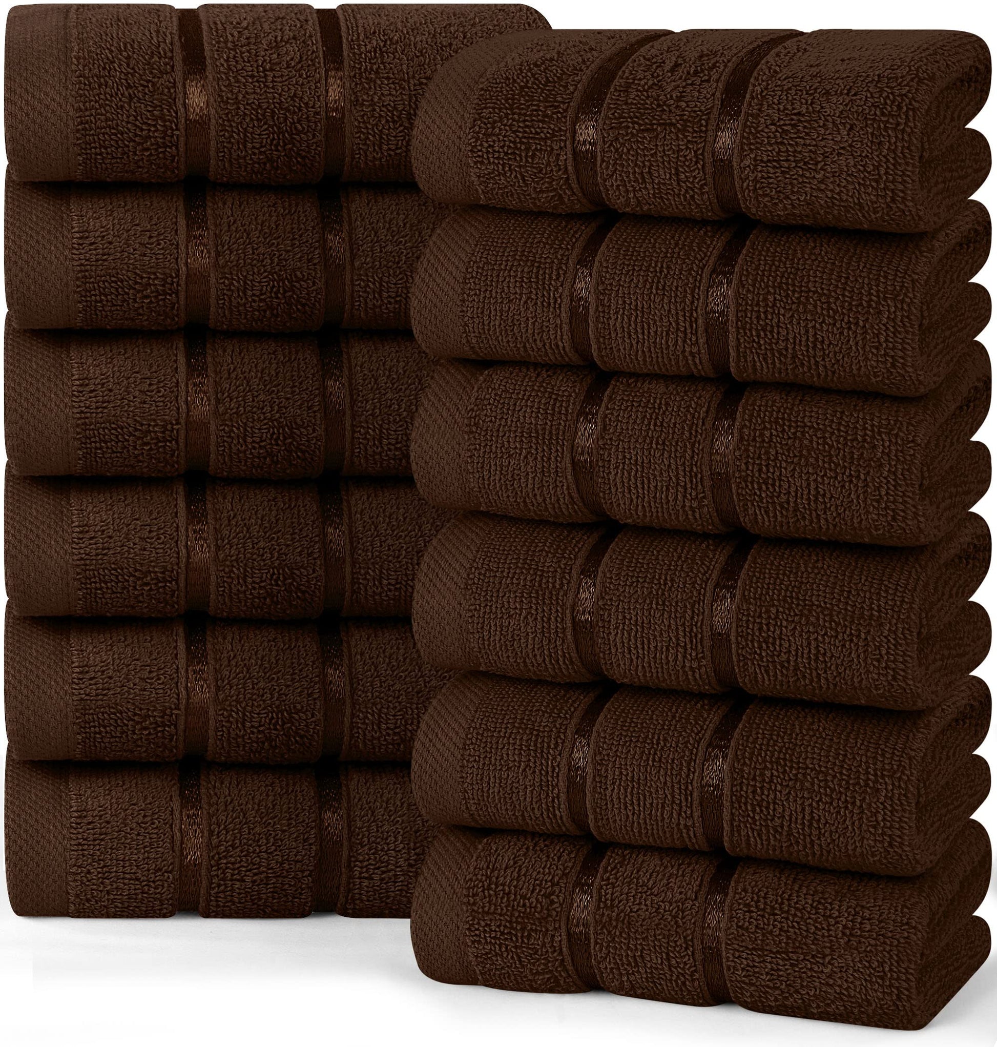 Utopia Towels, 12 Pack Viscose Luxury Wash Cloths Set, 12 by 12 Inches, 100% Cotton Ring Spun, Highly Absorbent and Soft Feel Essential Washcloths for Bathroom, Face Towel, Gym and Spa, Brown