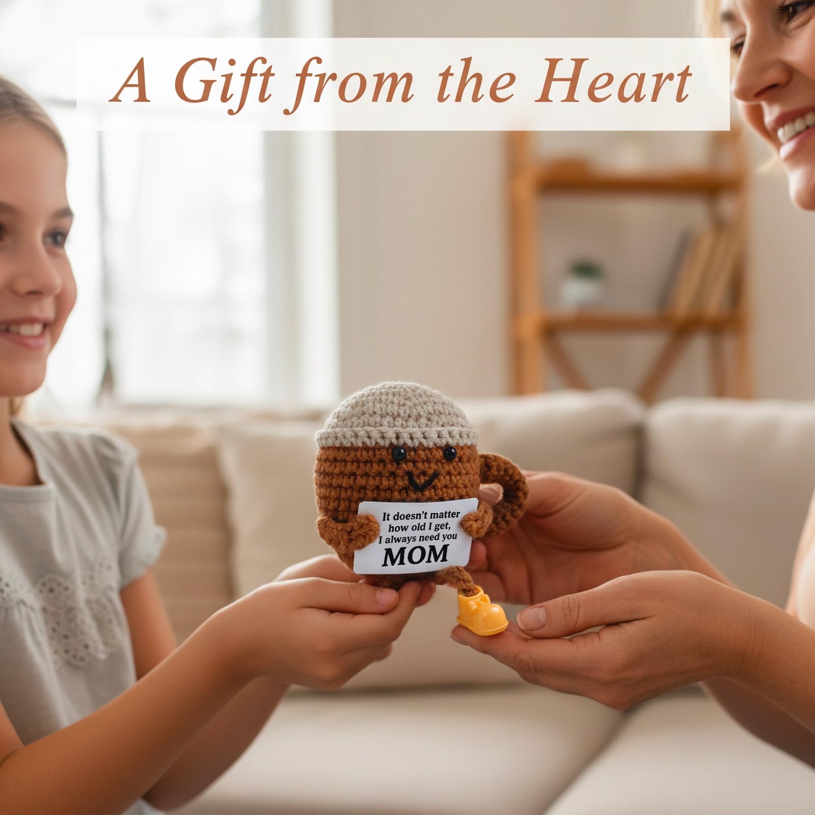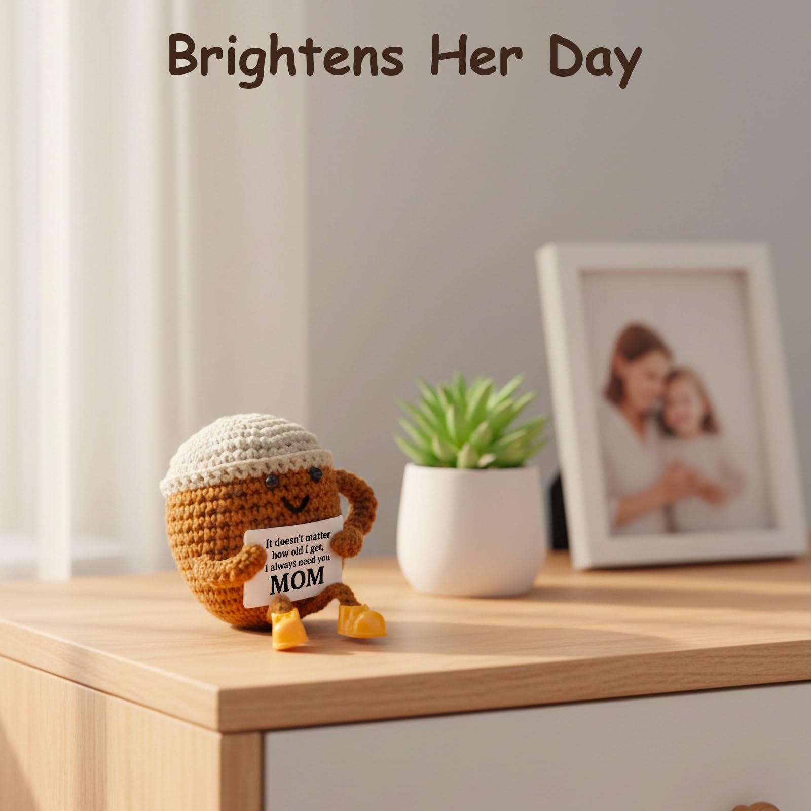 Valentine's Day Gifts for Her Him Women Men Girlfriend Boyfriend Birthday Gifts, Positive Crochet Coffee Cup Desk Decor, Cute Small Coffee Lover Gift for Best Friend Couple Wife Husband