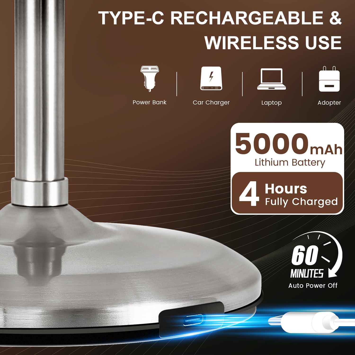 - 【5000mAh Battery Type-C Rechargeable Mirror& A Week Ultra-long Usage per Single Charge】This makeup mirror with lights features a powerful 5000mAh ultra-long-lasting battery, allowing you to enjoy up to 10 hours of continuous use after just a quick 2-hour charge.Plus,makeup mirror built-in automatic shut-off feature activates after one hour of inactivity, ensuring energy efficiency and prolonging battery life. Equipped with a innovative base touch sensor switch,lighted makeup mirror makes it effortless to turn on/off with just a gentle touch. Say goodbye to fumbling with buttons when you need to apply your makeup or check your appearance.