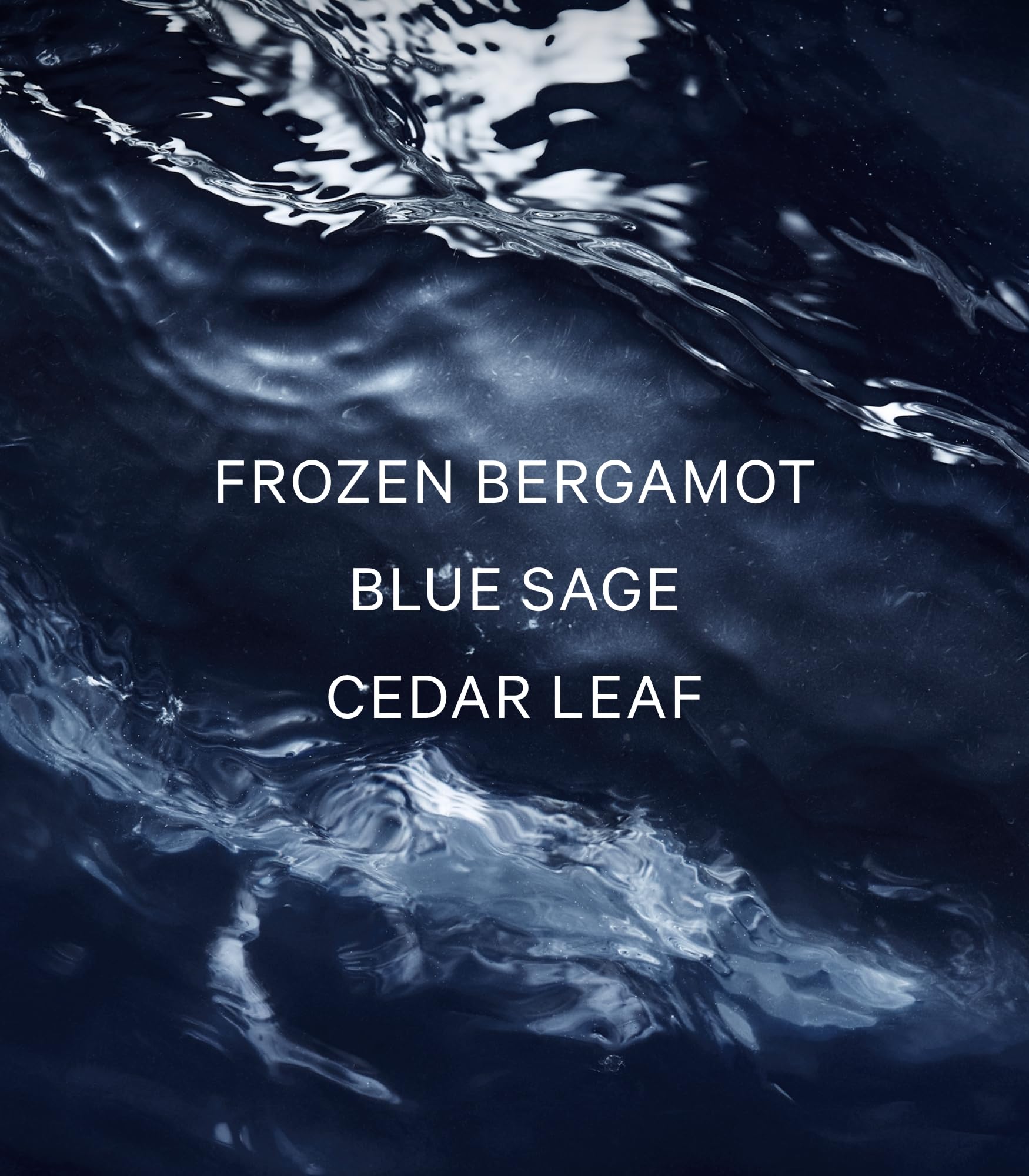 - Scent Notes: frozen bergamot, blue sage, cedar leaf