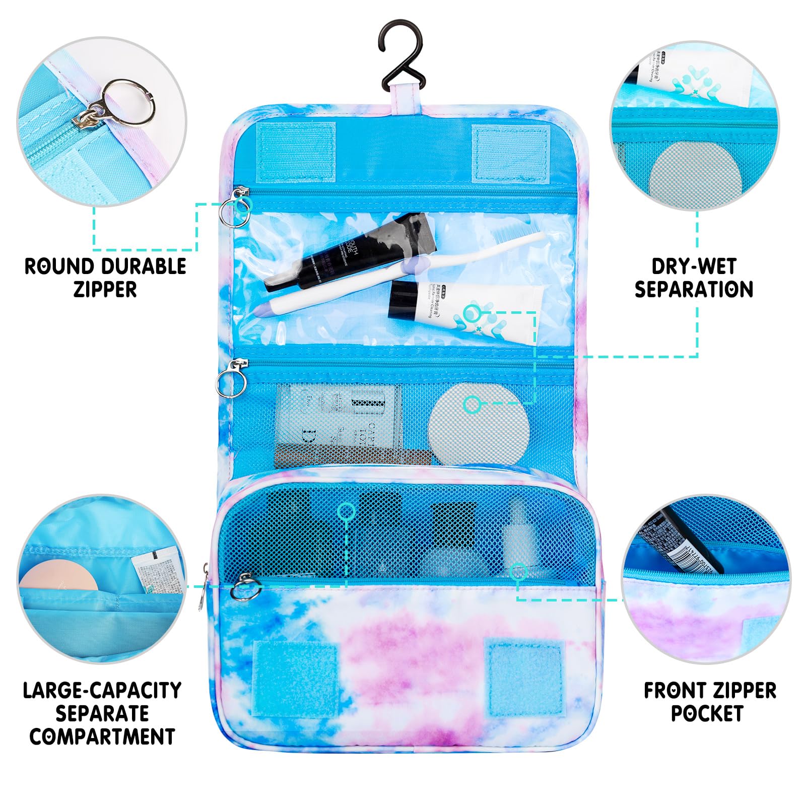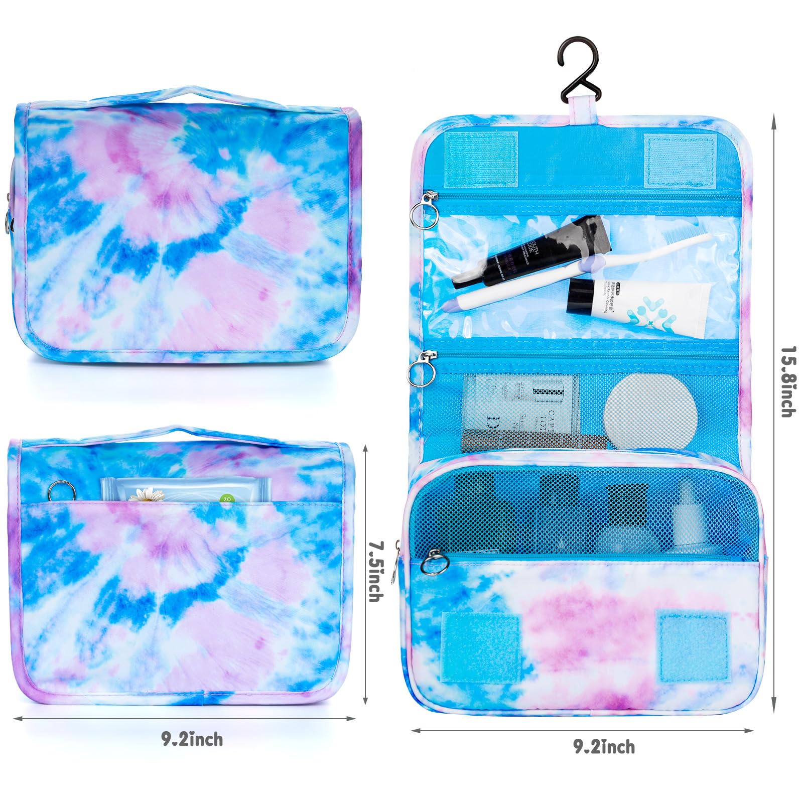 Vipdeal Kids Hanging Toiletry Bag for Girls, Travel Toiletry Bag for Little Young Girls Cosmetic Makeup Waterproof Wash Bag Toddler Traveling Toiletries, Tie Dye Blue