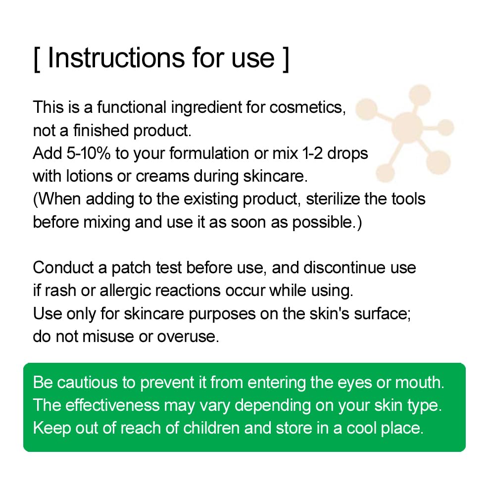 How to Use: Mix 1-2 drops with your skincare product or add 5-10% as a functional ingredient when making cosmetics. Discontinue use immediatel