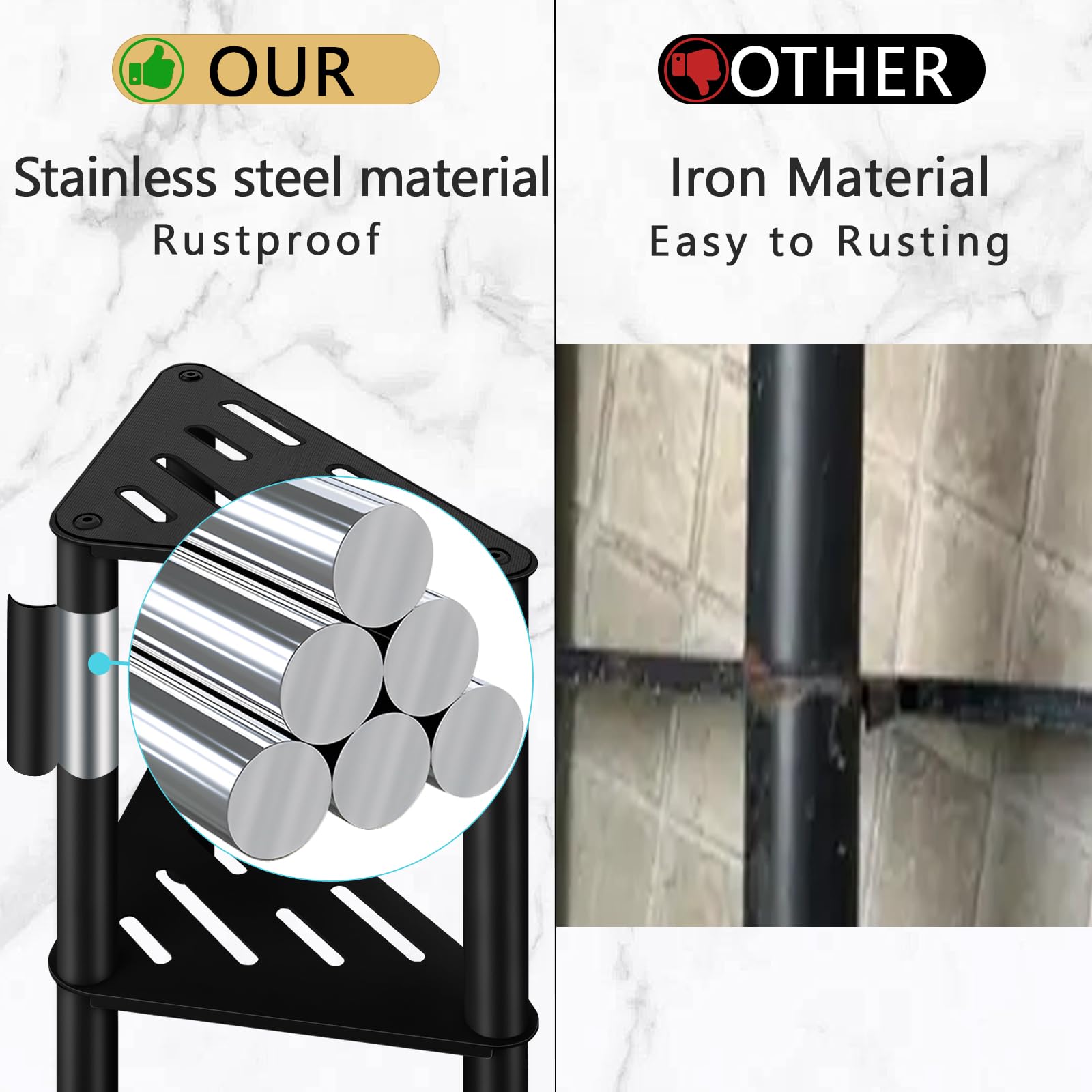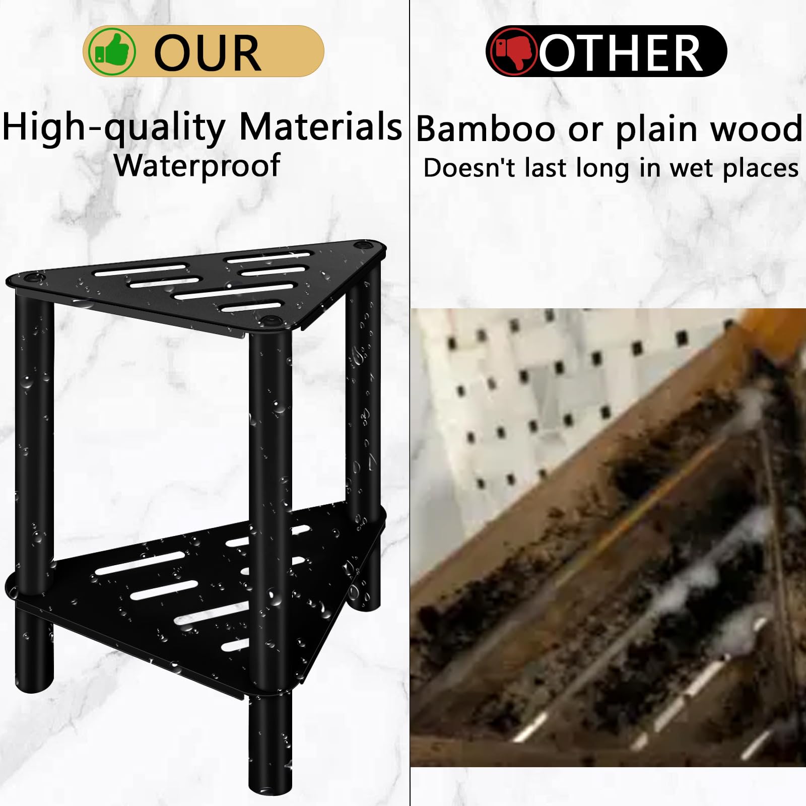 - CONVENIENT EXTRA STORAGE: This stainless steel shower bench, features a 2-tier design, providing extra storage shelf for your bathroom essentials. Use it as a to store toiletries, towels, and more, keeping your shower organized . The triangle design allows it to fit neatly into any corner, maximizing your shower space and functionality