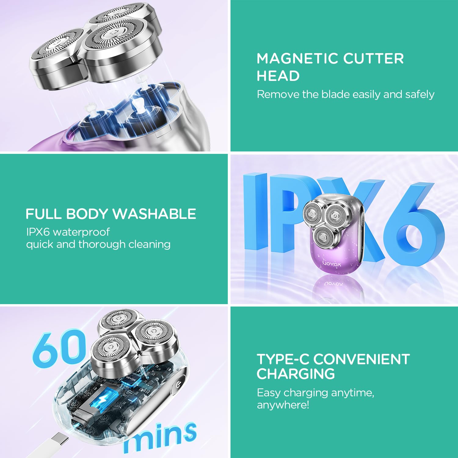 - Waterproof & Easy To Operate: Electric razor for women is IPX6 waterproof all over, can be used wet or dry! Magnetic head, easy to remove, can be rinsed directly under the running water, easy to clean. One-button operation is easy for both novice and experienced shavers!