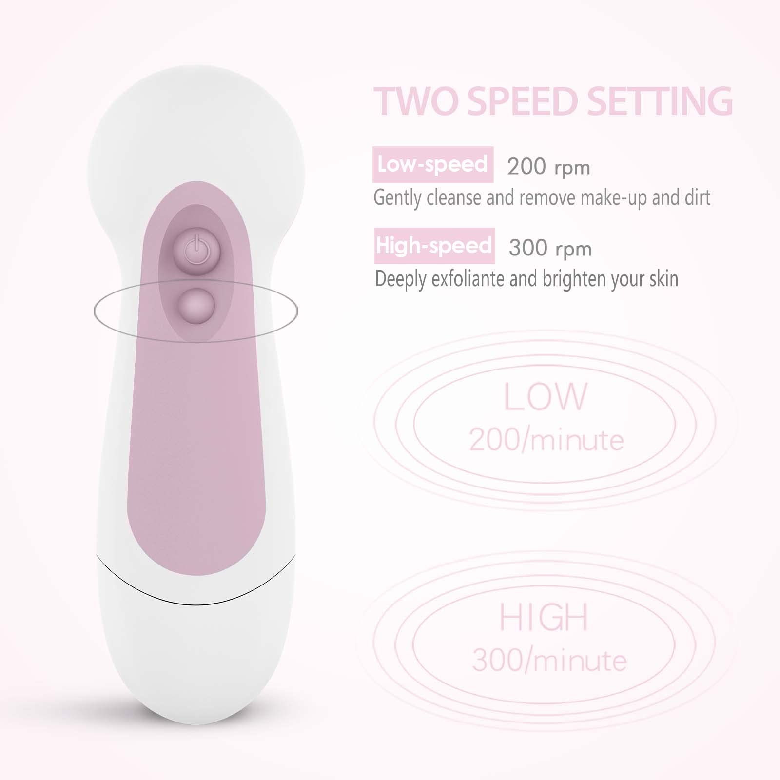 - GENTLE EXFOLIATING & DEEP CLEANSING: Our facial cleansing brush has 2 rotation speeds meet the cleansing needs, “Low” for daily cleaning, “High” for exfoliation, which is 6 times more effective than washing by hands.