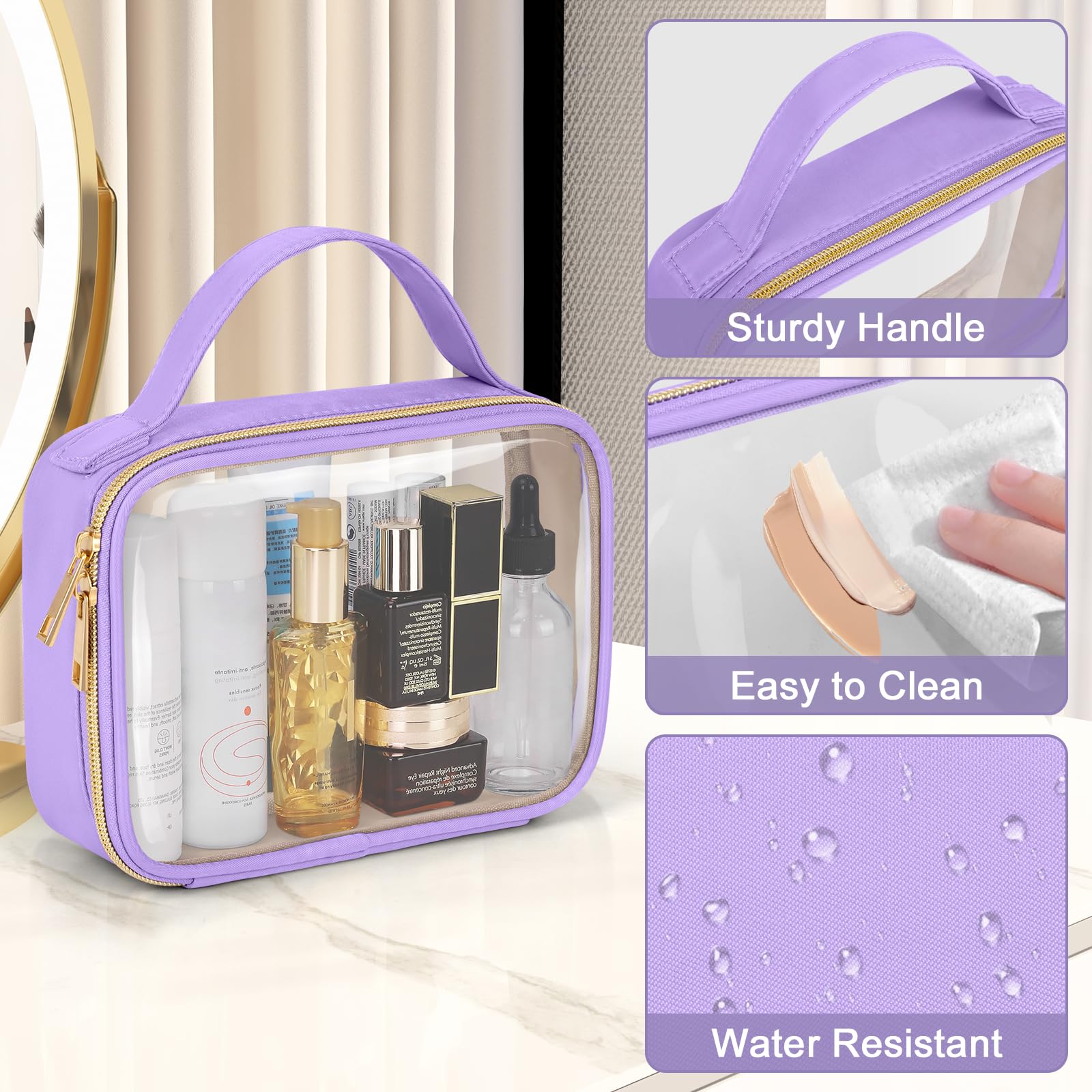 Wedama TSA Approved Toiletry Bag, 2 Pack Clear Makeup Bags with Handles, Quart Size PVC Clear Cosmetic Bags for Women and Men, Carry on Airport Airline Compliant Bag, Purple