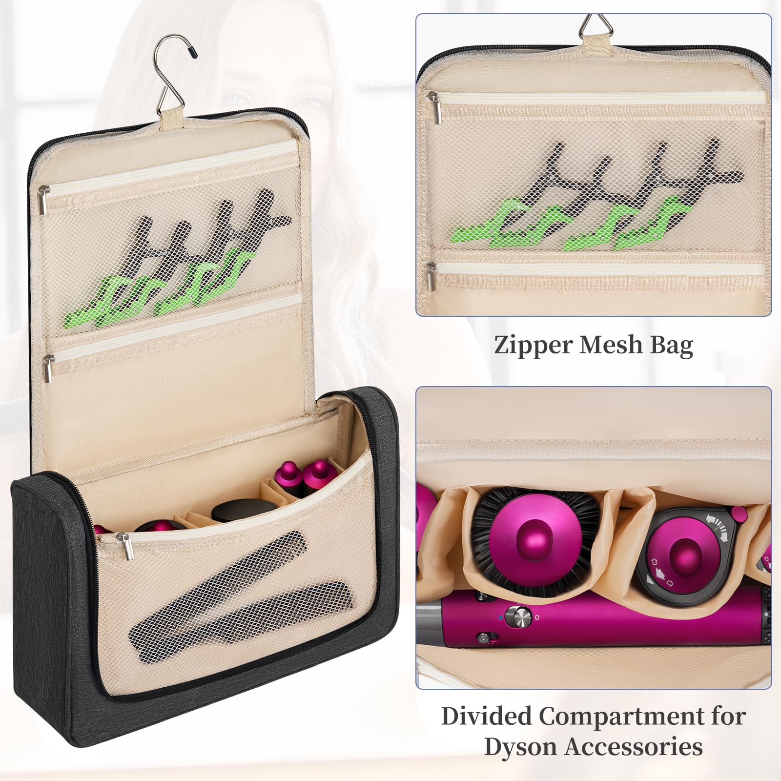- 【Unique Design】Specially compatible with Dyson Airwrap styler, also compatible with Dyson Supersonic. 3 zipper pockets and 1 zipper back pocket for storing hair dryer attachments, hair salon essential oils, clips, sprays or other toiletries