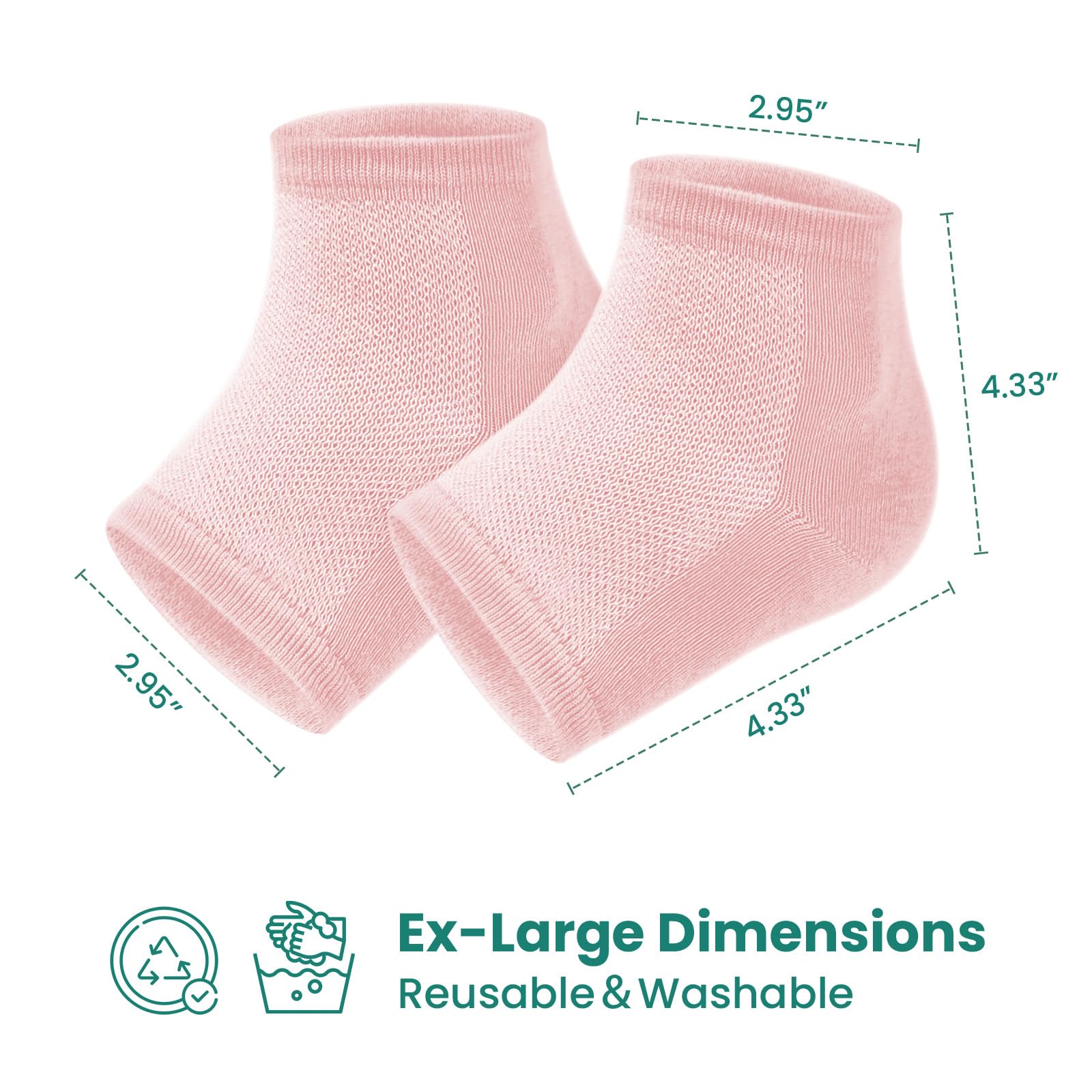 Welnove Moisturizing Heel Socks - 2 Pairs Aloe Vera Extract Infused Gel Lining for Dry Feet - Cracked Heel Repair Treatment - Cotton Socks for Women Men Foot Care (Pink, Extra Large)
