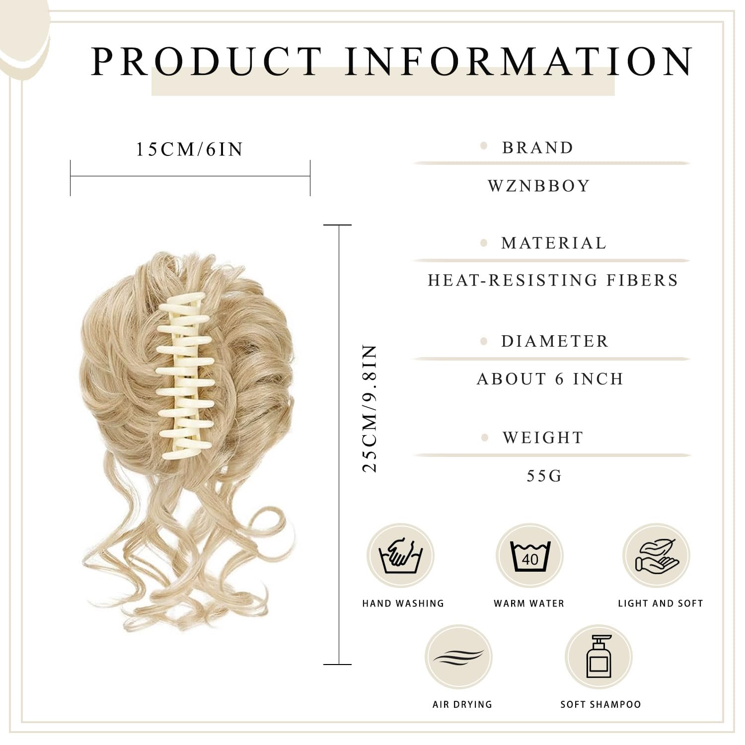 WZNBBOY Messy Bun Hair Piece Claw Clip Synthetic Chignon Tousled Updo with Tendrils Hair Extensions Hair Bun Curly Wavy Faux Hair Bun Hair Scrunchies Hair Accessories for Women(Light Blonde)