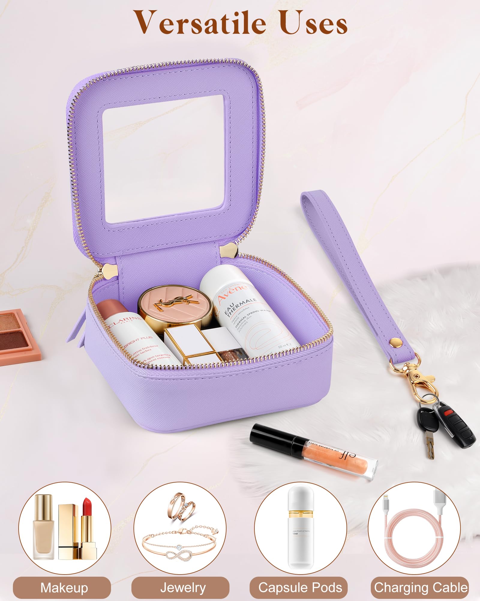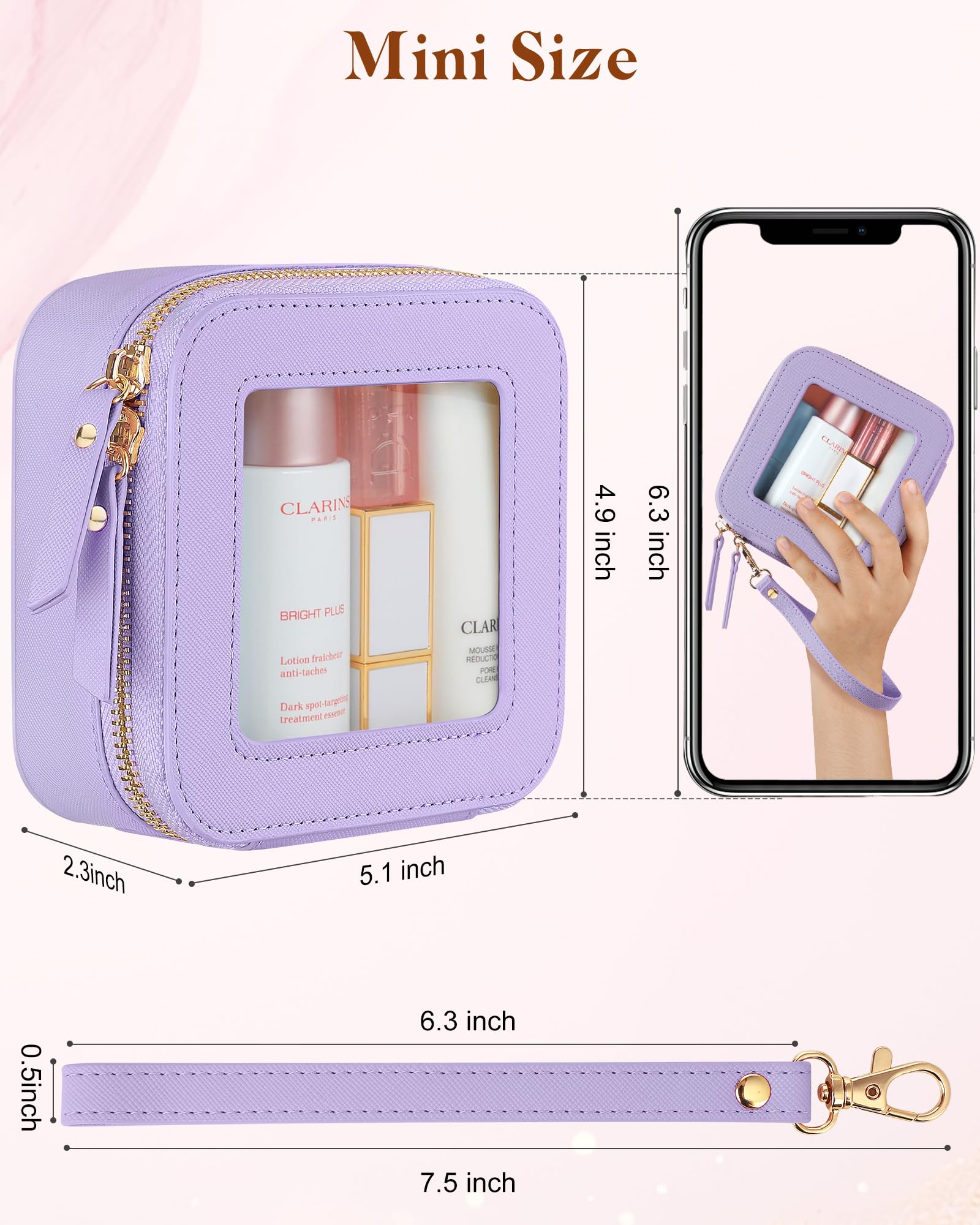 XUGUXA Clear Makeup Bag | Mini Makeup Bag | Small Makeup Bag/Small Cosmetic Bag for Purse | Cute Leather Makeup Pouch | Purse Organizer | Car Travel Purse Essentials for Women (Purple Mini)