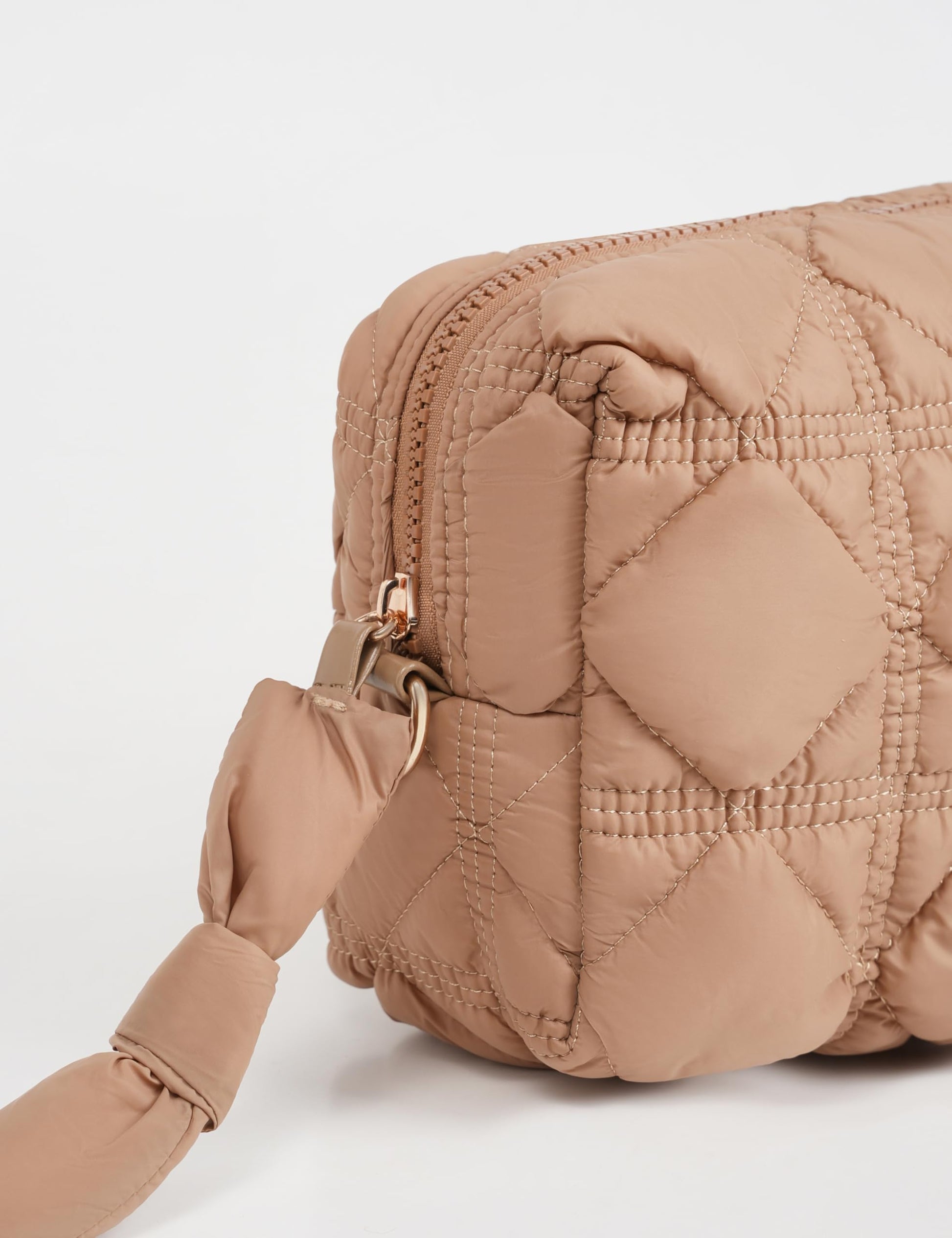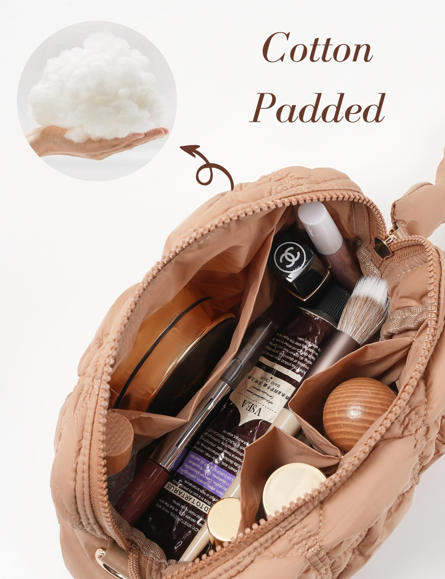 Yarnic Quilted Makeup Bag Cosmetic Bag, Travel Toiletry Bag for Women, Cute Makeup Bag Organizer Puffer Makeup Pouch (M, Khaki)