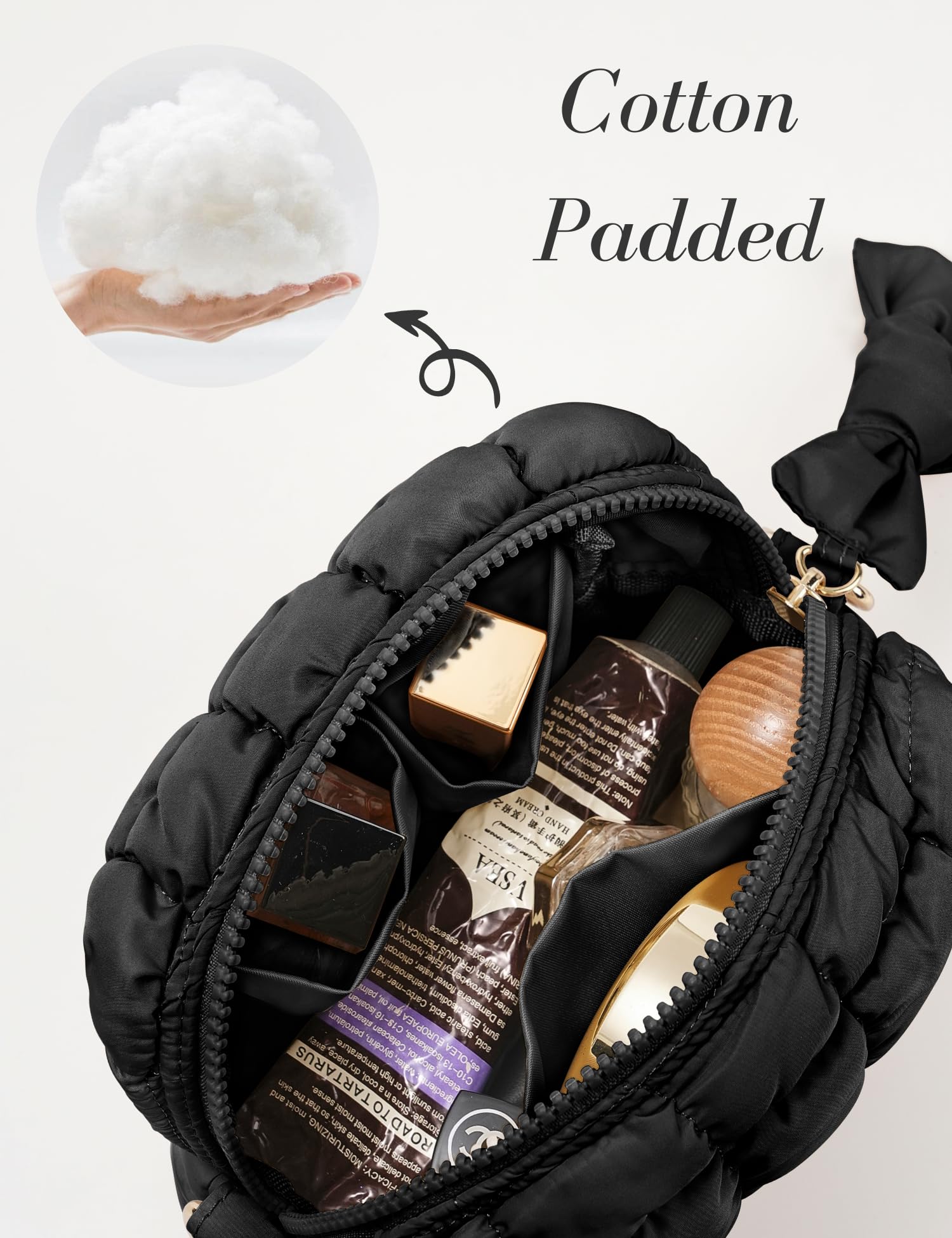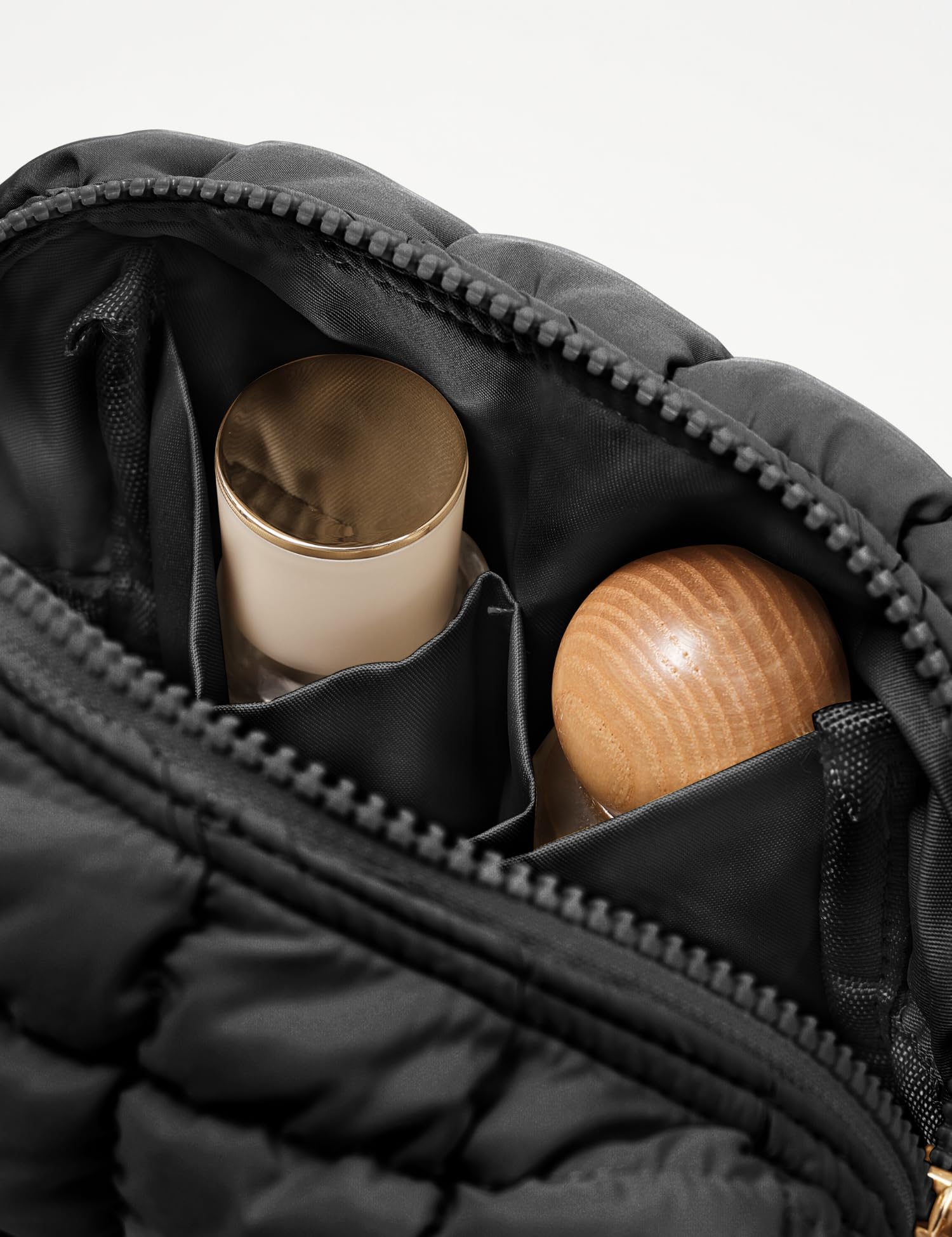Yarnic Quilted Makeup Bag Cosmetic Bag, Travel Toiletry Bag for Women, Cute Makeup Bag Organizer Puffer Makeup Pouch (S, Black)