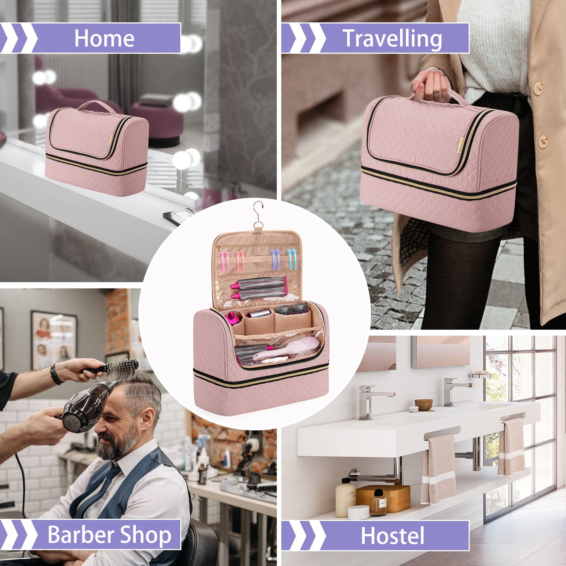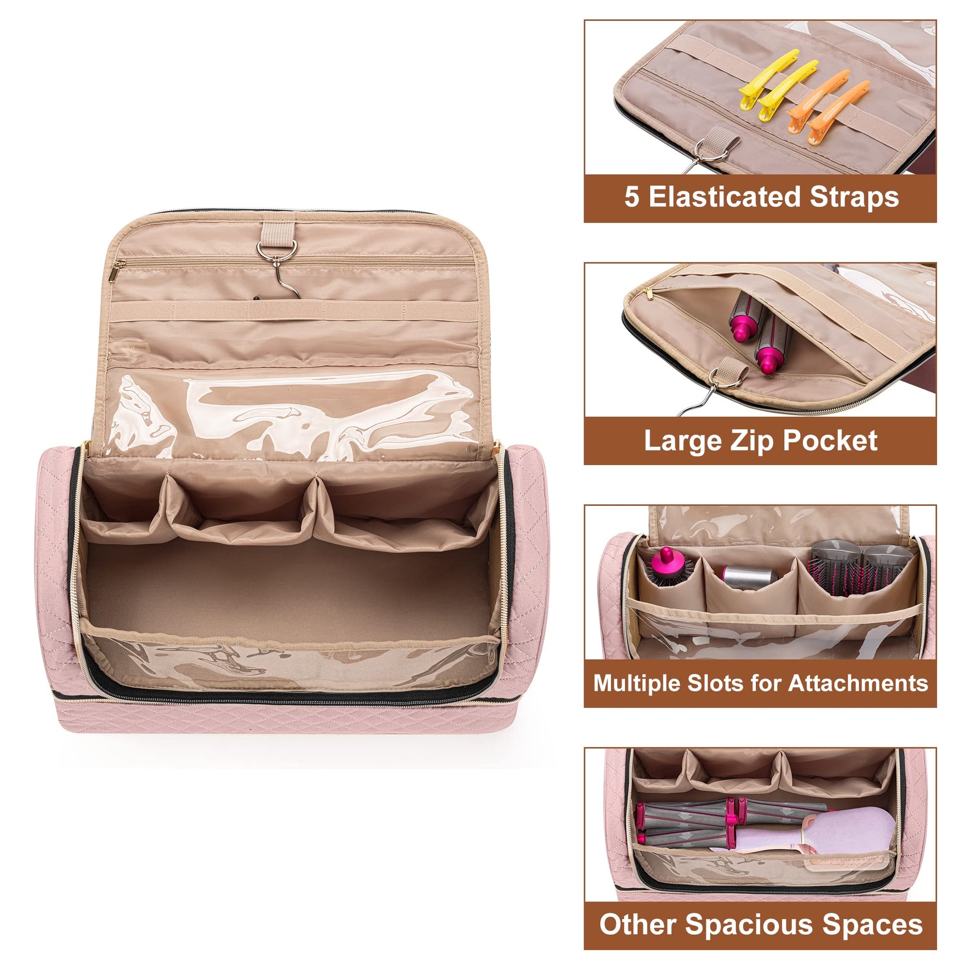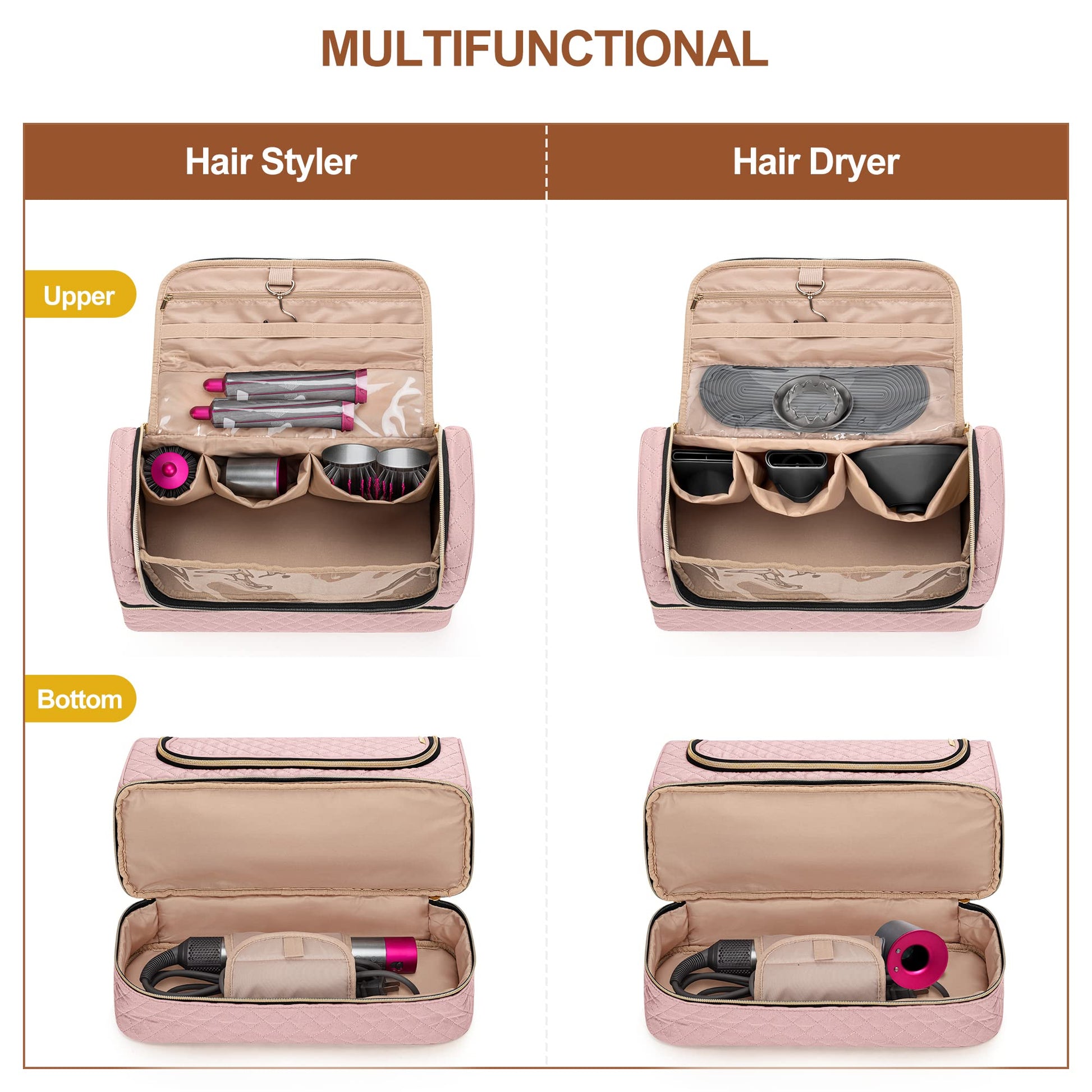 Yarwo Double-layer Storage Bag Compatible with Dyson Airwrap Multi-styler Complete Long and Attachments, Portable Travel Case with Hanging Hook for Hair Curler Accessories, Dusty Rose (Bag Only)