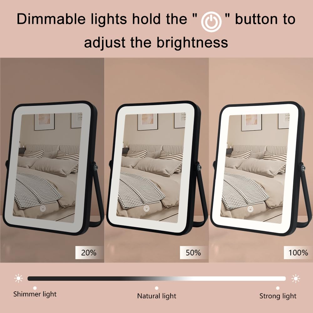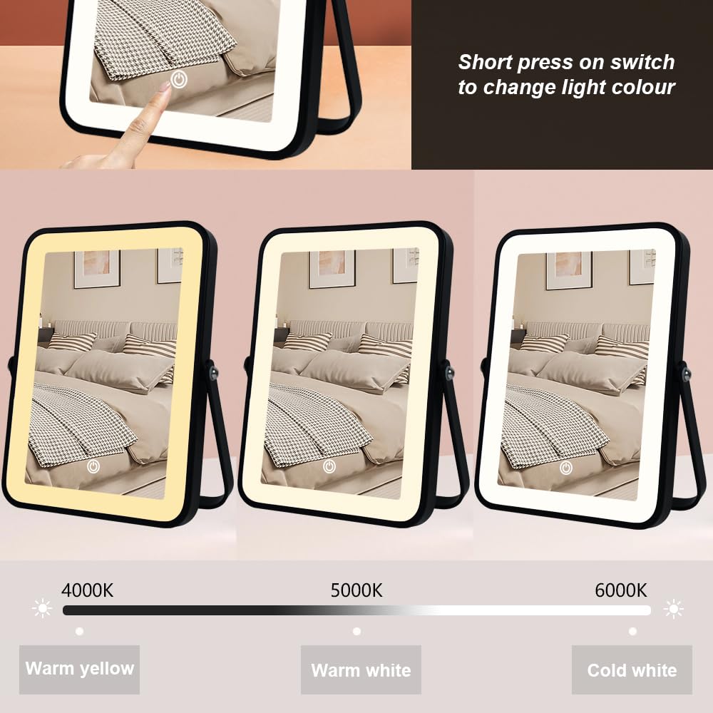 - 【Sturdy Stand with 360° Rotation】Our light up mirror for desk features a robust U-shaped stand that provides stability and support. It ensures the mirror stays securely in place while you're using it.