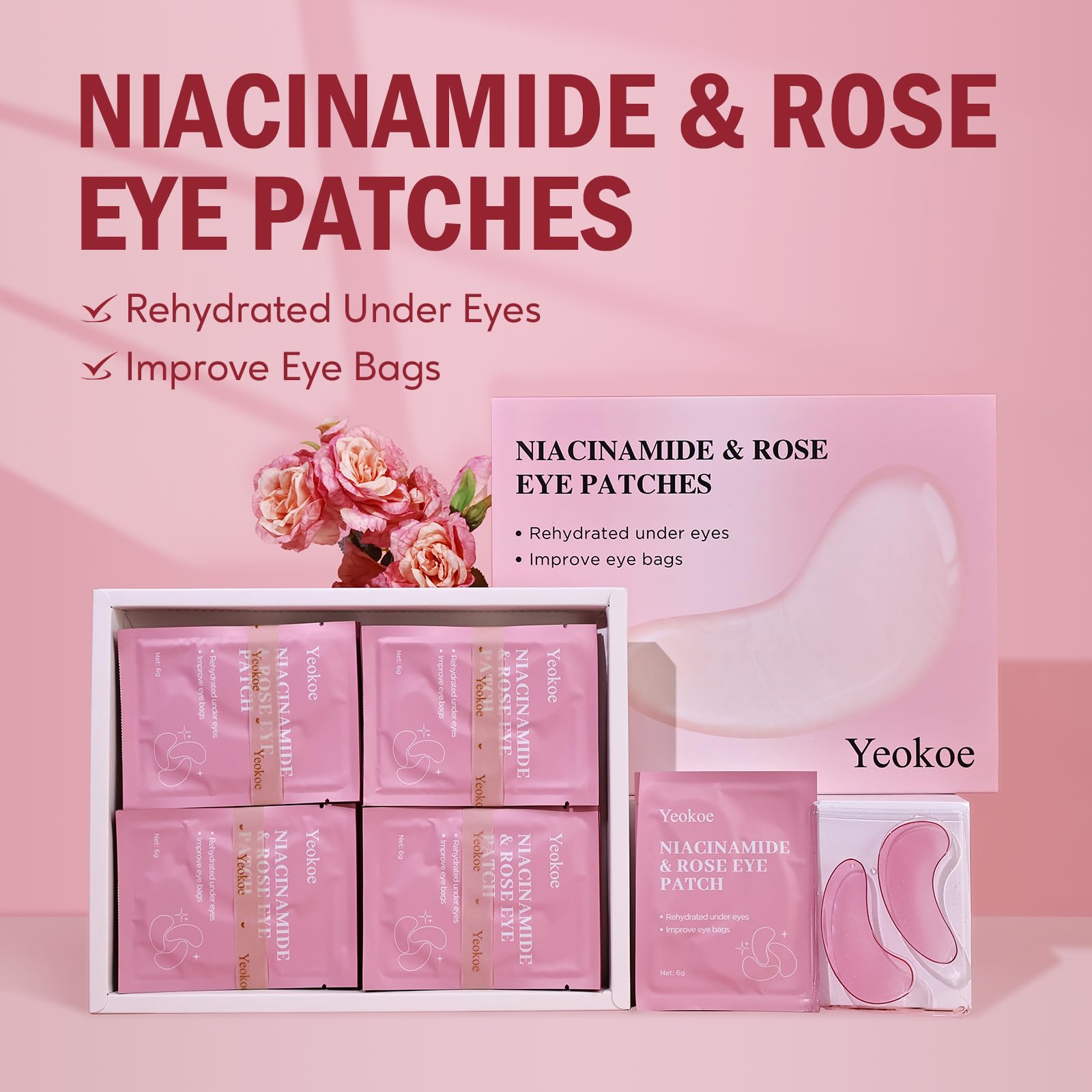 Yeokoe Under Eye Patches for Dark Circles,Puffy Eyes,20 Pairs Face Masks SkinCare With Niacinamide and Rose for Rehydrated