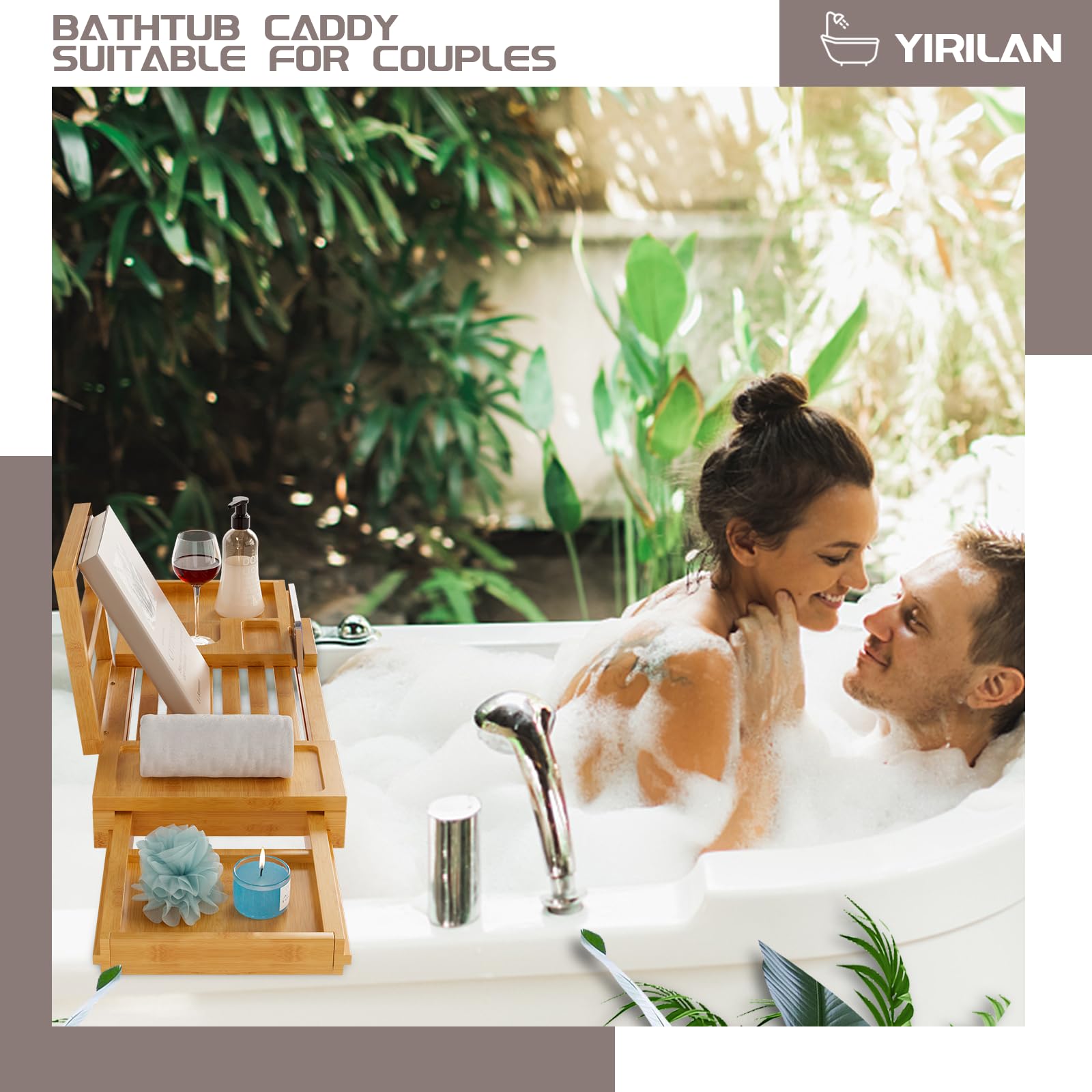 Yirilan Bamboo Bathtub Tray, Expandable Bathroom Tray, Waterproof Tray Caddy, Perfect Bath Caddy for Home Spa, Gift for Loved Ones, Bamboo