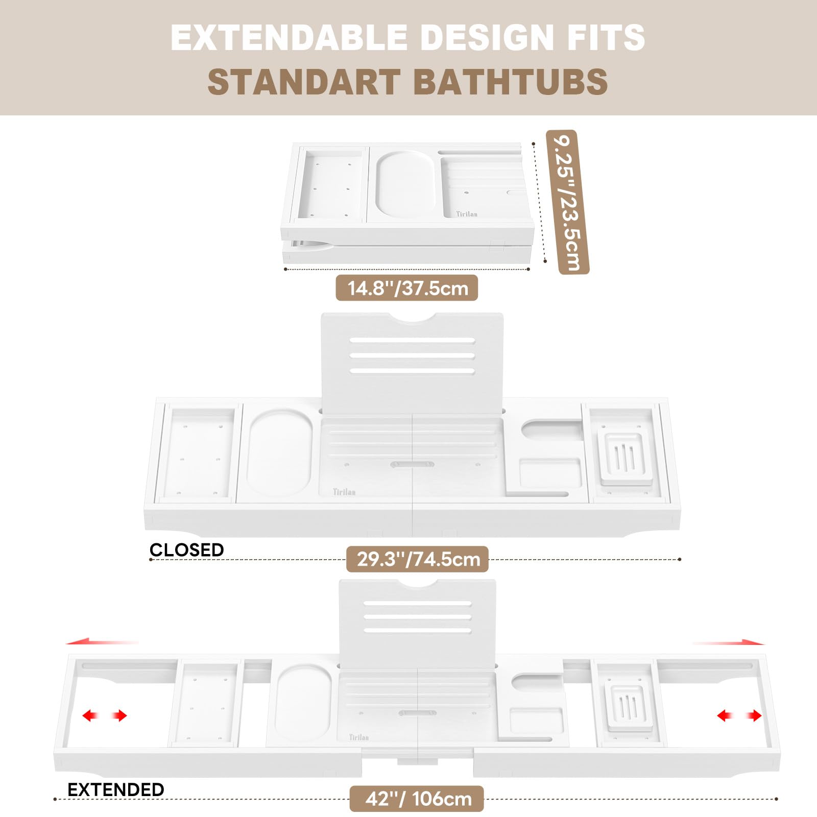 Yirilan Foldable Bamboo Bathtub Tray Caddy, Bathtub Tray, Can Place Wine Glasses, Books, Mobile Phones Multifunctional Bath Tub Tray, Suitable for Gifts in Various Festivals, White