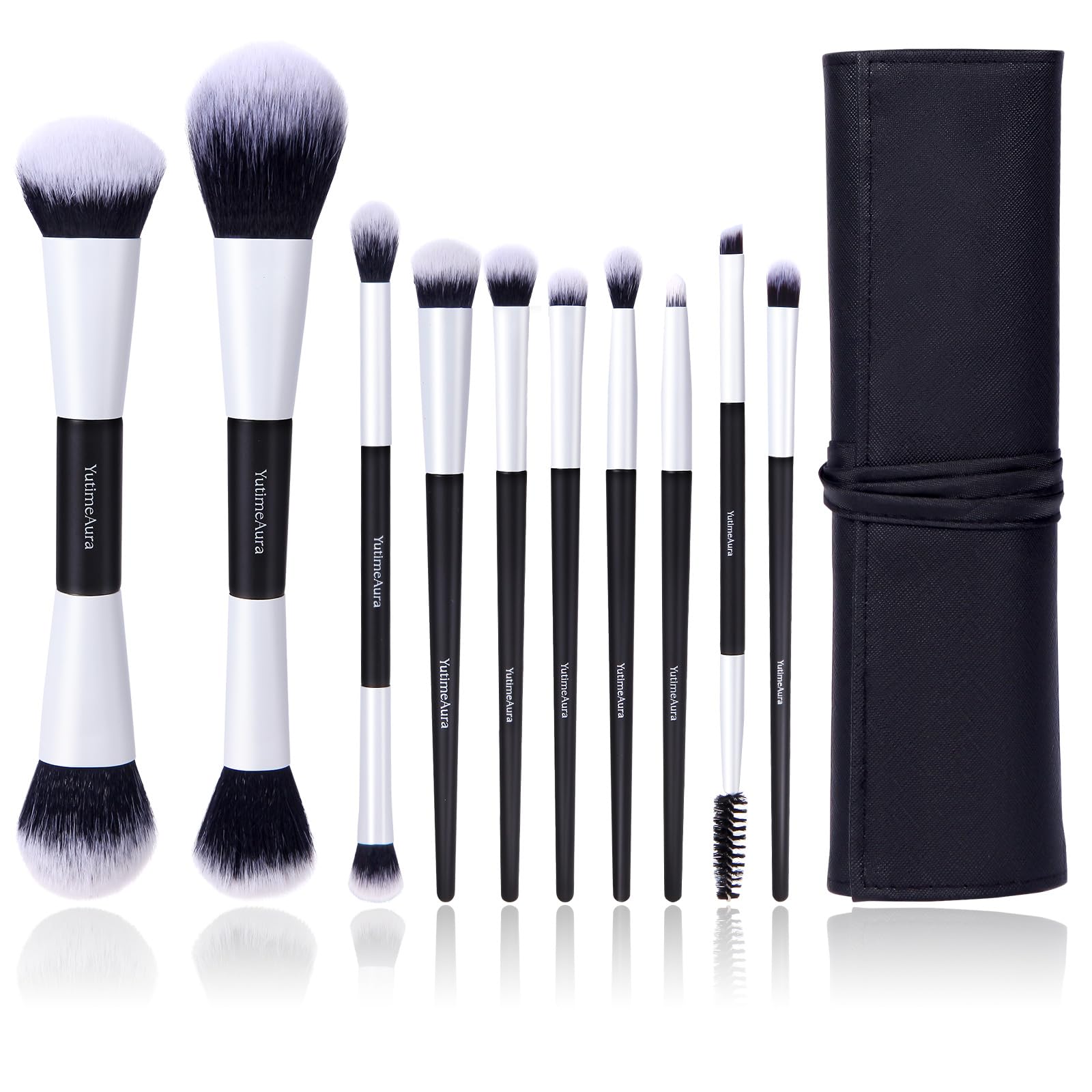 YutimeAura Makeup Brush Set 10pc, Dual-Ended Makeup Brushes For Bronzer, Contour, Eyeshadow, Blush, Concealer, Foundation