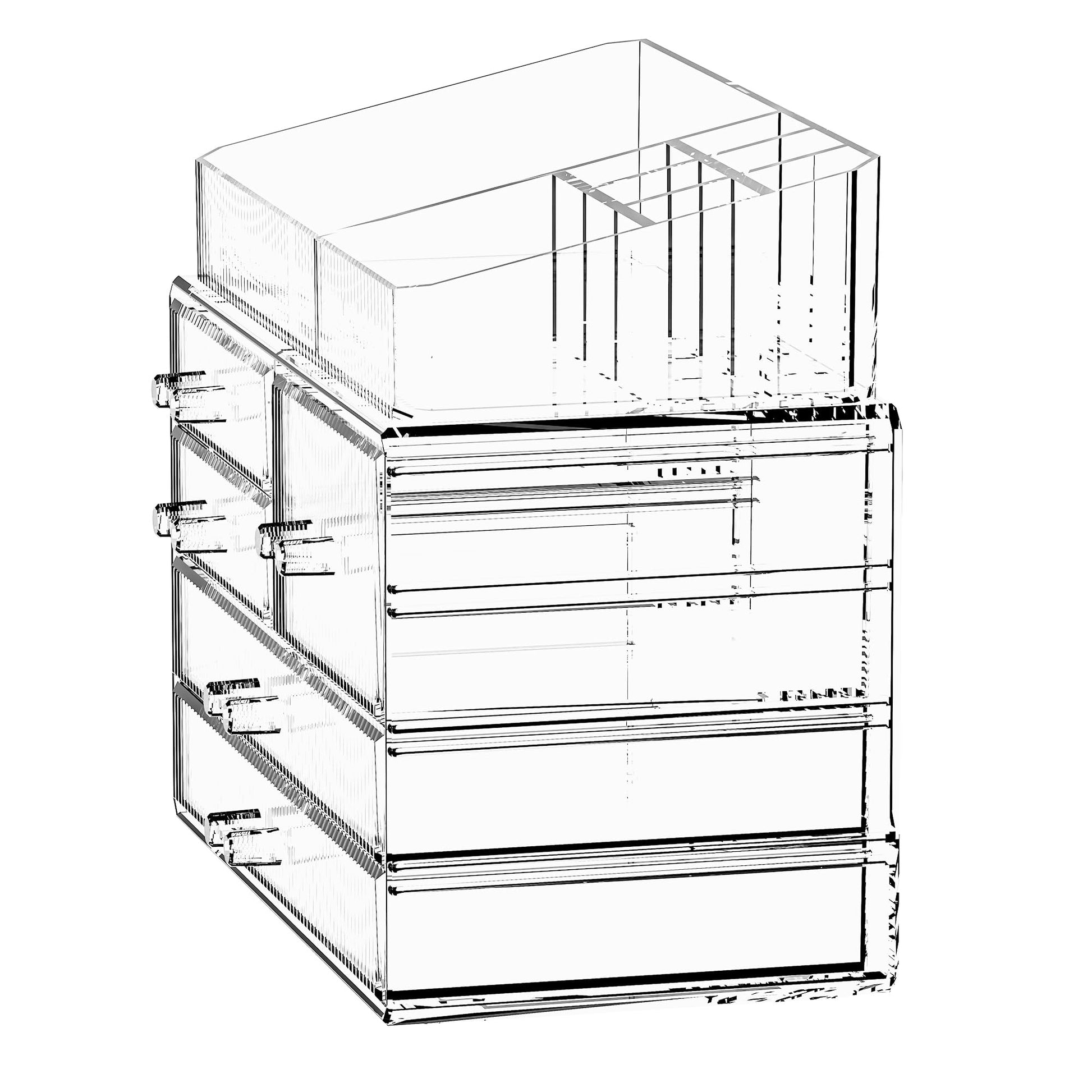 ZHIAI Stackable Storage Drawers, Acrylic Bathroom Counter Organizer Clear Makeup Organizers for Vanity, Kitchen Cabinets, Bathroom, Undersink, Home Organization and Storage (2Top 3 Drawers,)