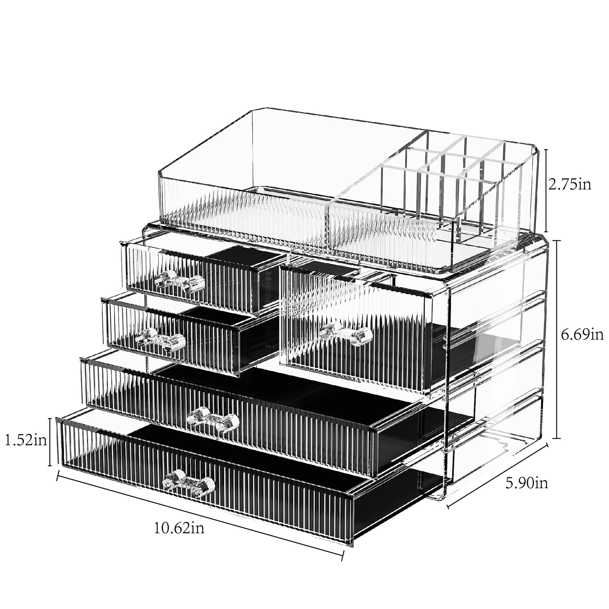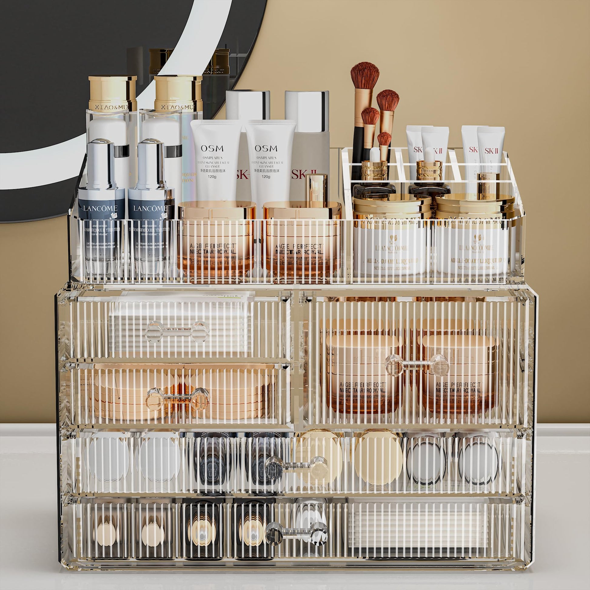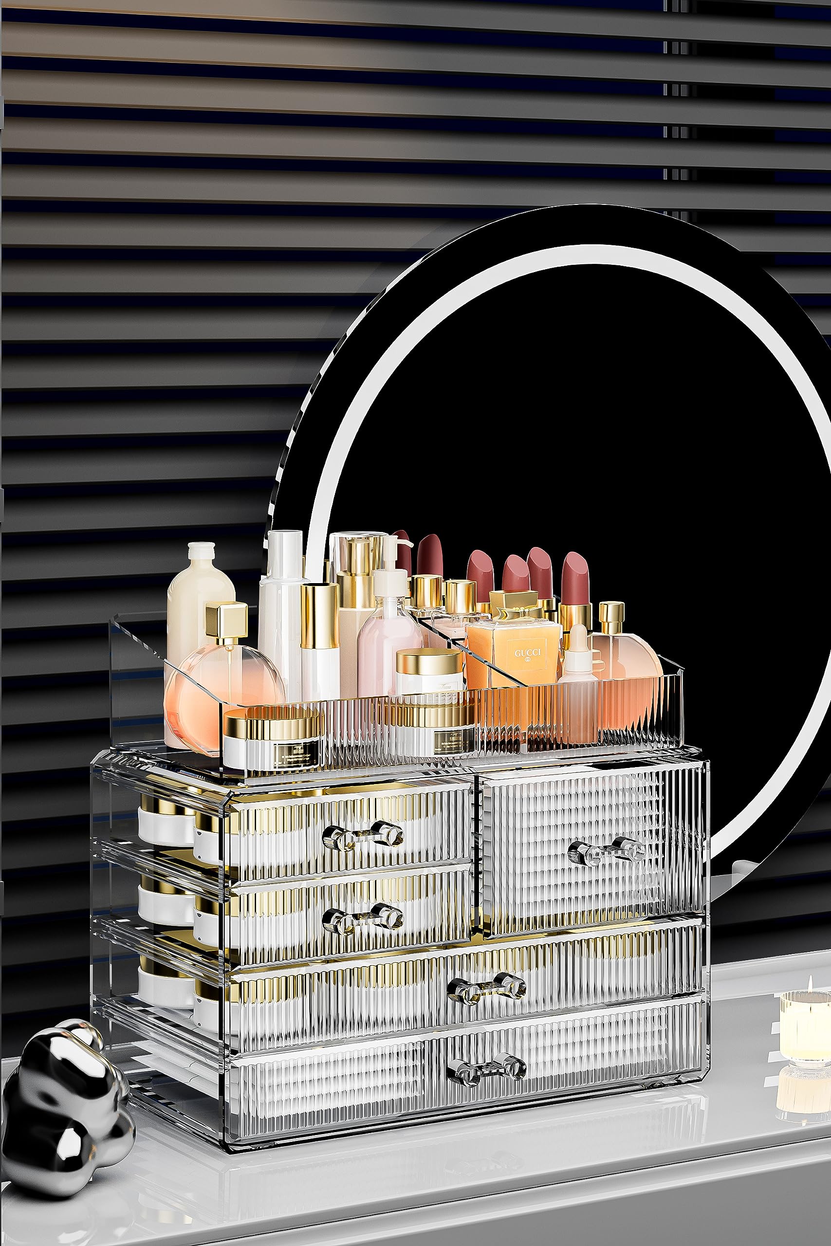 - With ample storage space, this make up organizers and storage is perfect for storing all your favorite makeup products, jewelry, and other accessories. The bathroom organizer features several compartments and drawers that are perfect for storing eyeshadows, lipsticks, brushes, and other makeup products.