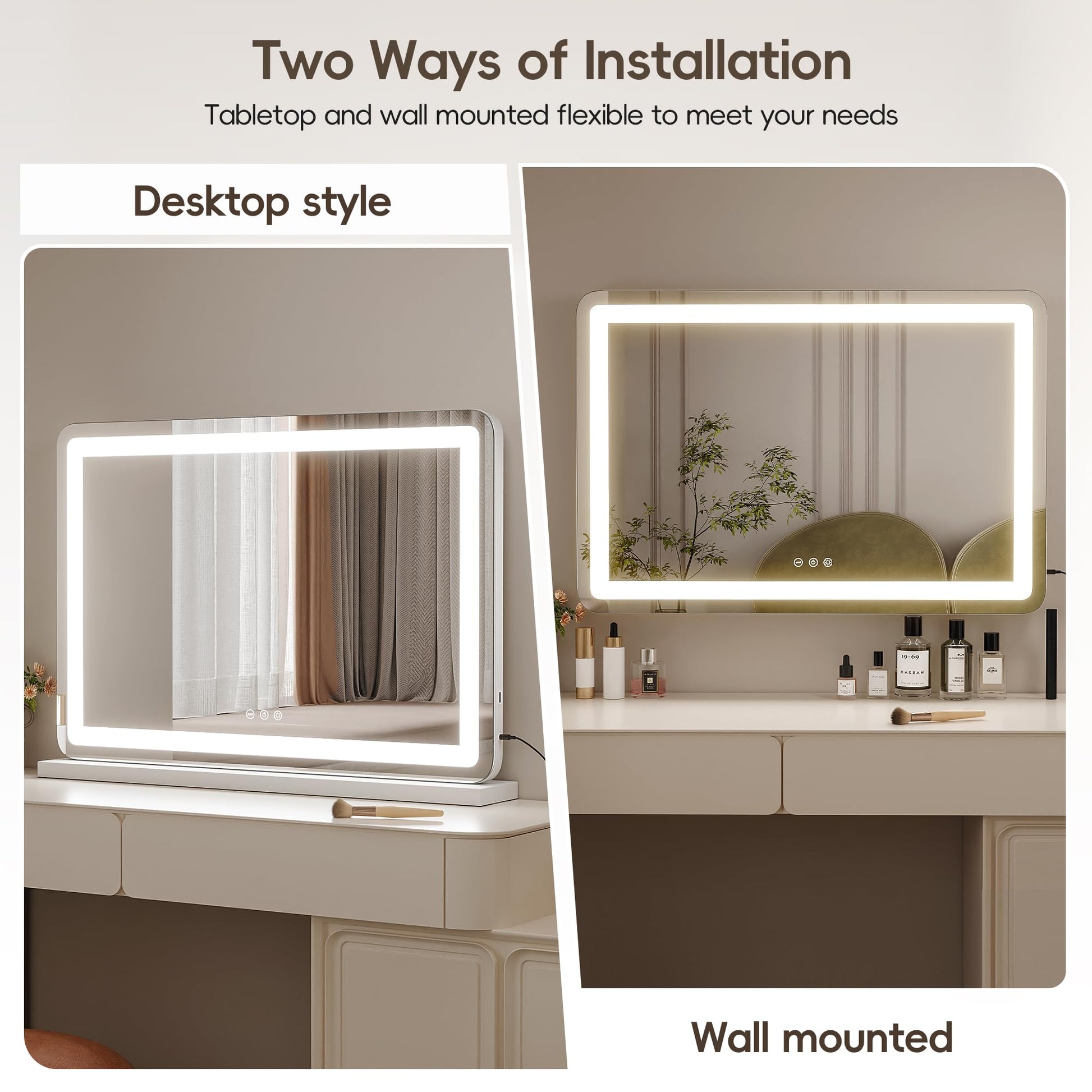 - 【Touch Screen Control with Memory Function】: The mirror includes a touch screen control with a memory function that remembers your last brightness and lighting settings, ensuring a personalized experience every time.
