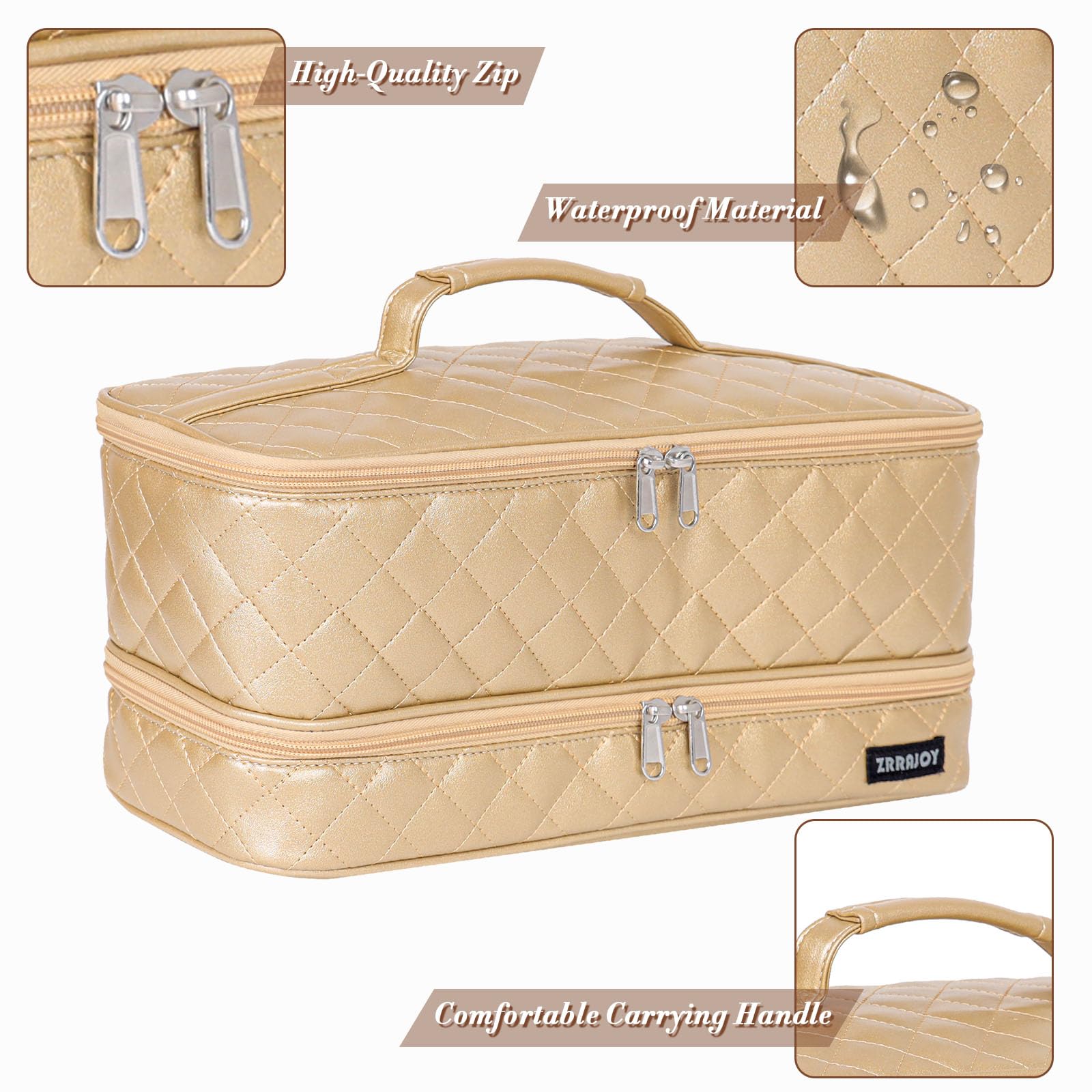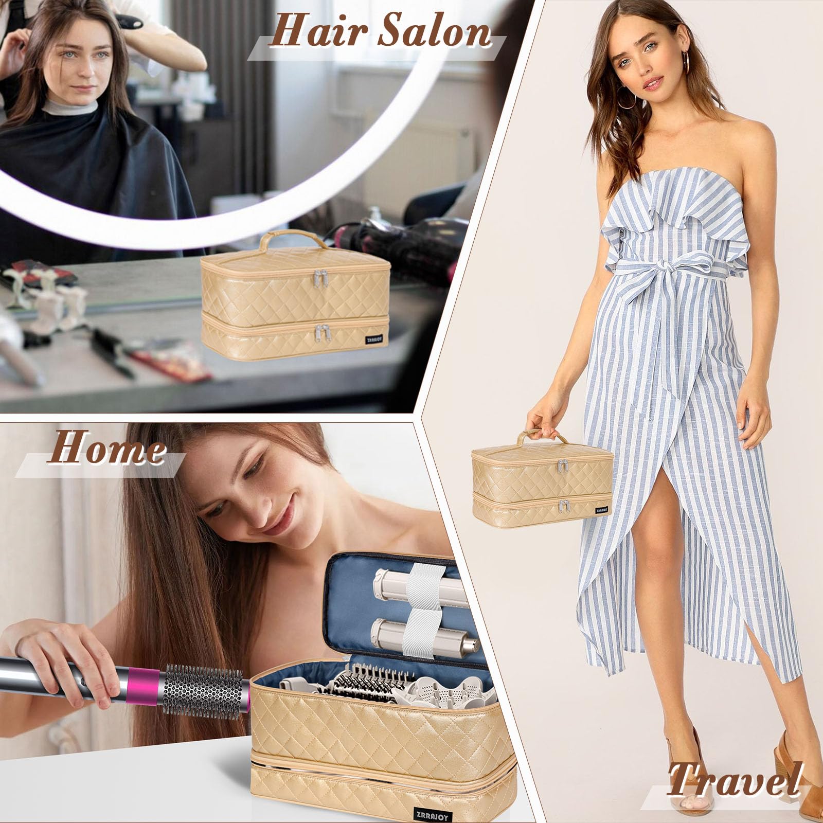 ZRRAJOY Double Layer Storage Case For Shark Flexstyle, Travel Carrying Case For Shark 430/440 Flexstyle, Organizer Bag For Shark Flexstyle/Dyson Airwrap Styler Attachments (Gold)