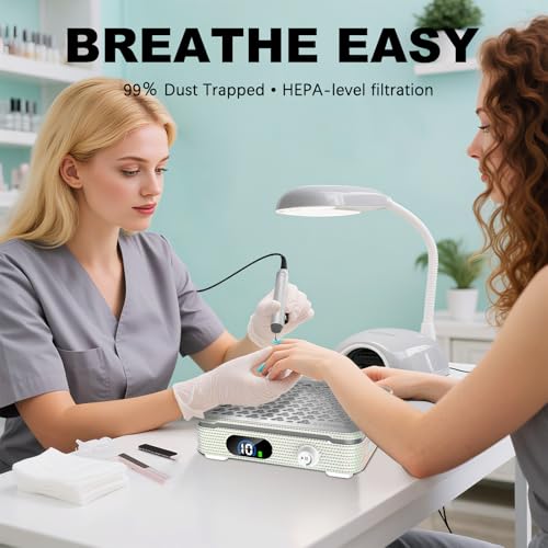 Nail Dust Collector | 1000PA Nail Vacuum Dust Collector | 10 Speed Levels | Low Noise & Strong Suction | Reusable Filter, 10 Pads + Nail Dust Brush| for Acrylic Nails, Salon & Home -White Diamond